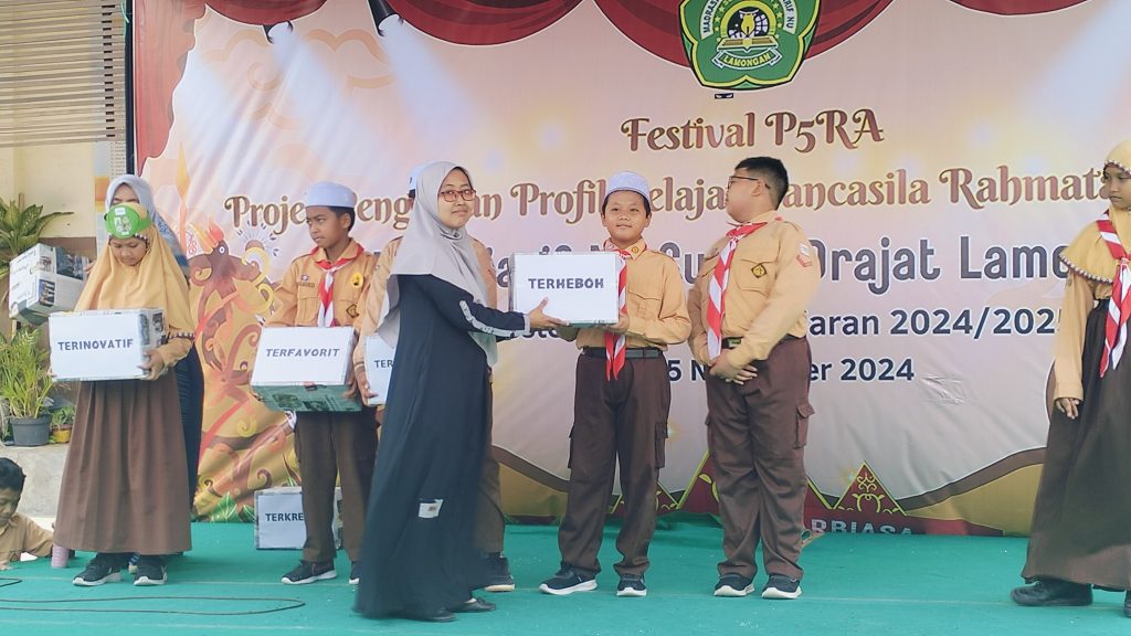 Penyerahan hadiah dilakukan oleh Kepala Madrasah, Ustaz Ubaidillah, S.Pd.I., dan Koordinator Bidang Al-Qur’an, Ustazah Inayatul Karimah. Dengan pemberian hadiah tersebut, berakhirlah rangkaian acara yang berlangsung selama tiga hari. Semoga kegiatan ini semakin menumbuhkan kecintaan siswa terhadap budaya dan kearifan lokal, serta memperkokoh karakter Pelajar Pancasila. (MCM)