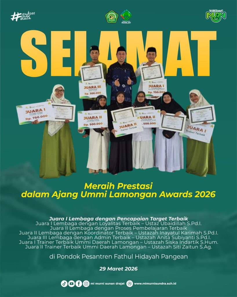 Prestasi membanggakan kembali diraih oleh MI Ma’arif NU Sunan Drajat Lamongan dalam ajang Halal Bihalal dan Ummi Lamongan Award 2026 yang diselenggarakan pada 29 Maret 2026 di Pondok Pesantren Fathul Hidayah Pangean. Kegiatan bergengsi ini menjadi momentum apresiasi bagi lembaga-lembaga pendidikan yang berada di bawah naungan Ummi Foundation.