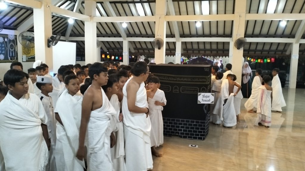 Sepanjang kegiatan berlangsung, para siswa terlihat sangat antusias dan bersemangat mengikuti setiap rangkaian acara, mulai dari penyampaian materi hingga praktik manasik. Mereka mempraktikkan tahapan ibadah seperti niat ihram, tawaf, sa’i, hingga tahallul dengan penuh perhatian dan kesungguhan.
