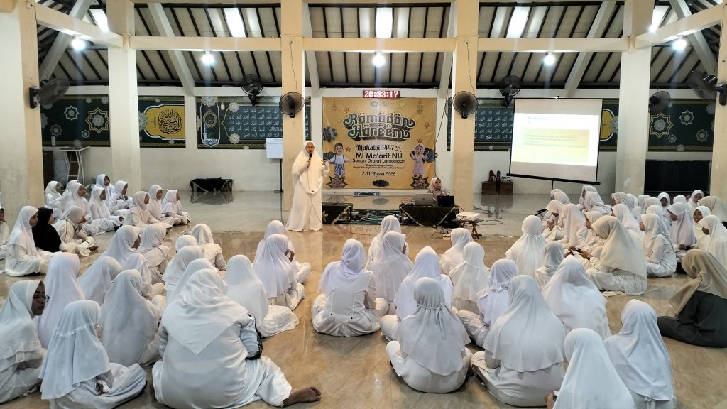 MI Ma’arif NU Sunan Drajat Lamongan kembali menghadirkan kegiatan edukatif dalam rangkaian program Ramadan tahun ini. Pada Senin dan Selasa, 9–10 Maret 2026, siswa kelas 5 dan 6 mengikuti kegiatan praktik manasik haji dan umrah yang dilaksanakan di mushola madrasah setelah salat tarawih.