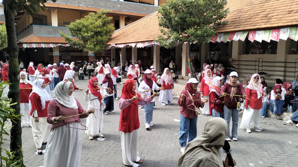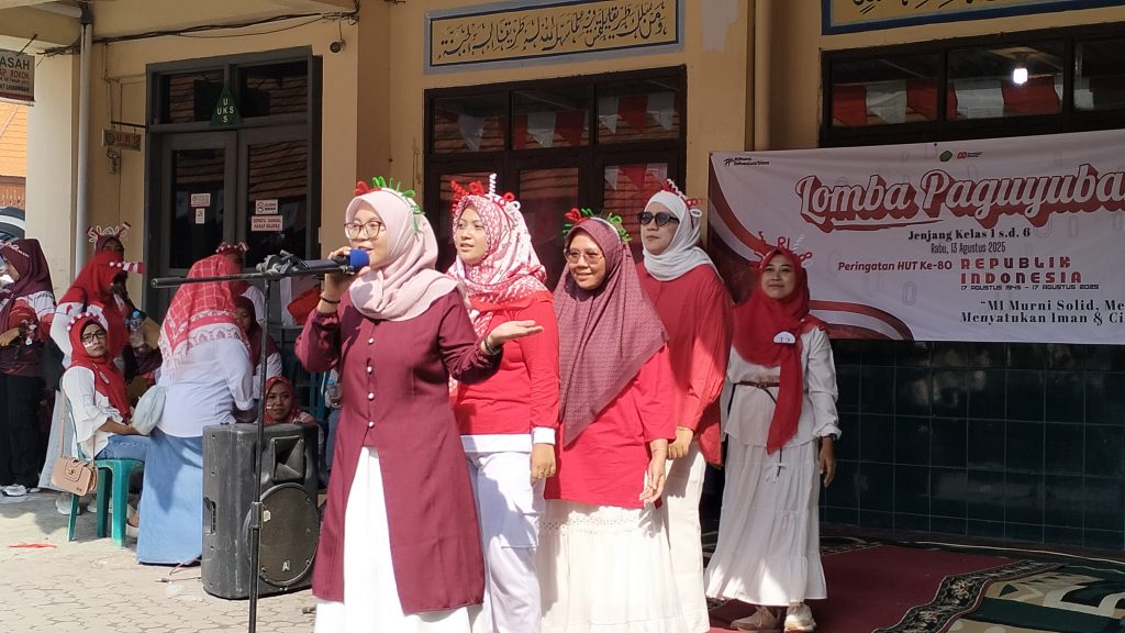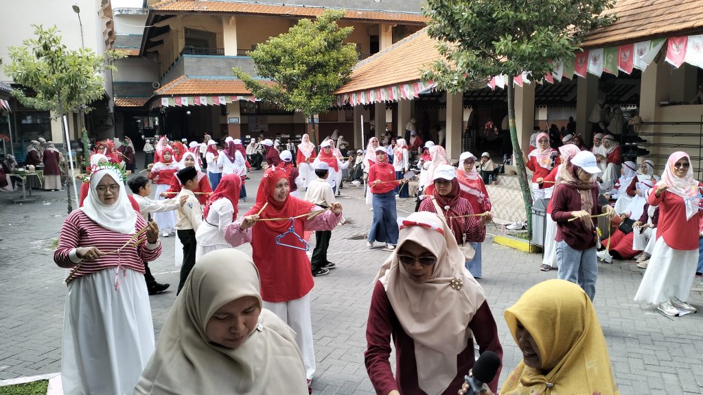 Lamongan, 13 Agustus 2025 — Pagi itu, halaman MI Ma’arif NU Sunan Drajat Lamongan dipenuhi riuh tawa dan sorak-sorai siswa. Dari dekat, para siswa antusias menyaksikan keseruan lomba Bernyanyi Estafet yang diikuti oleh bunda-bunda paguyuban. Sesekali, para guru dan siswa yang menonton ikut bergoyang dan berjoget riang mengikuti irama musik yang mengalun.