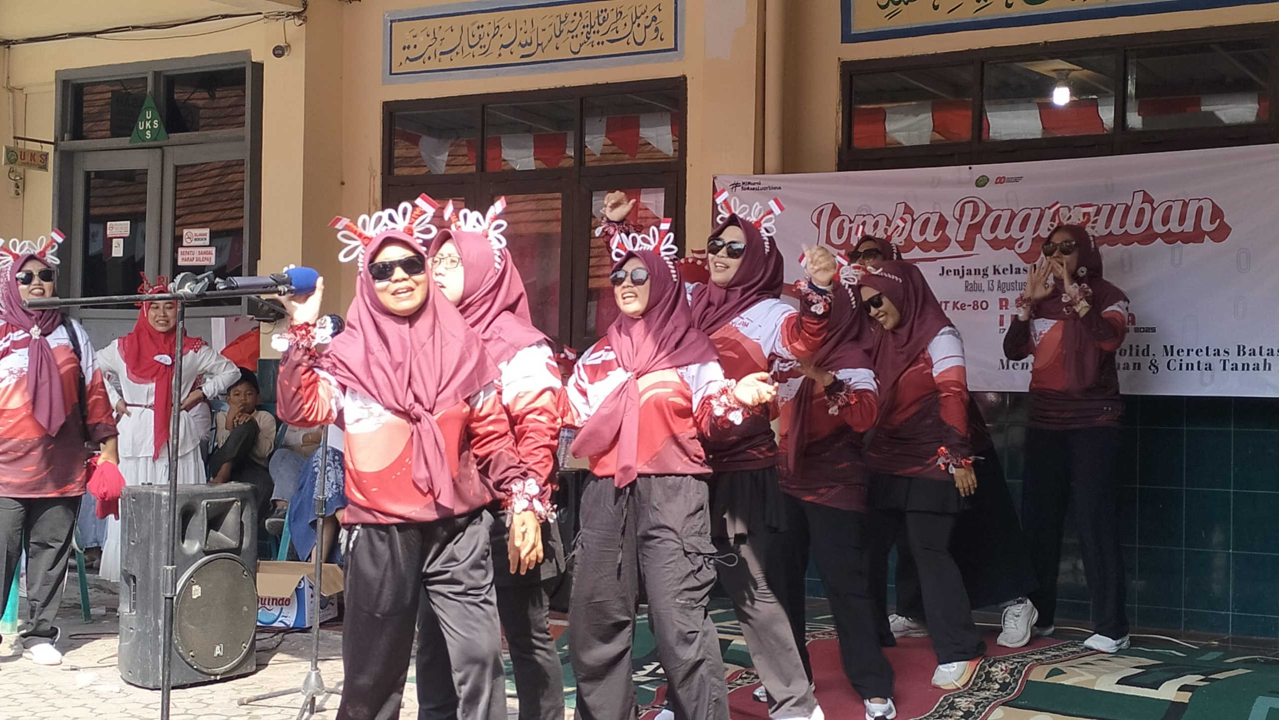 Lamongan, 13 Agustus 2025 — Pagi itu, halaman MI Ma’arif NU Sunan Drajat Lamongan dipenuhi riuh tawa dan sorak-sorai siswa. Dari dekat, para siswa antusias menyaksikan keseruan lomba Bernyanyi Estafet yang diikuti oleh bunda-bunda paguyuban. Sesekali, para guru dan siswa yang menonton ikut bergoyang dan berjoget riang mengikuti irama musik yang mengalun.